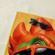 Cool T-Rex Dinosaur wearing sunglasses with a relaxing cup of coffee in a tropical setting