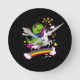 T-Rex Dinosaur Riding Unicorn Birthday Party Round Clock