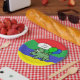Cute hand drawn cartoon dinosaur birthday plates for a little boy's dinosaur themed birthday party.