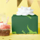 Cute Green trex dinosaur wrapping papter personalised with kids name. Cute prehistoric t rex gift wrap design for little boys 1st birthday party, baby shower, christmas etc. Make one for son, grandson, new baby, grandchild, new mum, mother to be, newborn child etc. Wild Pre historic t-rex animal cartoon illustration for children. Funny Tyrannosaurus rex.
