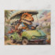 This is an AI generated design. I had to make a design with a T-Rex driving a golf cart so I made it. On all the images I made the steering wheel did not turn out right so then I thought if a T-Rex drove a golf cart I am sure it would wreck the steering wheel.