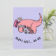 Send some Easter laughs with the **T-Rex Easter Struggle Greeting Card**! This humourous design features a **pink T-Rex wearing bunny ears**, bending over with its tiny arms, desperately trying to pick up a colourful Easter egg—tears of frustration rolling down its face. The playful text **"Happy East... Oh No."** adds a comedic twist, making it the perfect card for anyone who loves dinosaurs and a good laugh this Easter. A great way to share holiday joy with friends and family!
