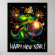 T Rex Happy New Year 2026 Disco Ball Fireworks Tee Poster