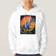This a charming-looking dinosaur, playfully peeking out amidst the warm hues of a breathtaking sunset. With its friendly demeanour and whimsical presence, the dino adds a touch of adventure and wonder to your wardrobe. A retro and vibrant sunset background featuring a cheeking dinosaur T-Rex with a touch of nostalgia, perfect for anyone who loves dinosaurs and vintage vibes.