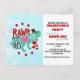 Valentine's day party invitation postcard with an image of a green t-rex wearing a black top hat with hearts and flowers all around. Text says Rawr means I love you in t-rex.
