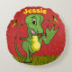 A T-Rex makes up this fun pillow. Flip it over for a different look! Customisable so you can add your own text and change the background colour. This design is available on both round and square pillows. Makes a great gift!