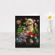T-rex Santa In Monster Truck With Christmas Trees Card
