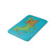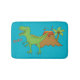 This is a very cute bath mat for the kids, featuring a green cartoon T-Rex dinosaur, with an erupting volcano in the background, there's even a little palm tree peeking out! The Dinosaur is saying "Roar!" but you can customise this text or even delete it entirely. I have made the background colour blue, but you can pick another colour too! Cool!