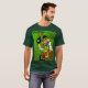 I give wanted to give this a 4 instead of a 5 because these Basic DARK T0shirts run unexpectedly SLIM or Narrow. Which is great if you do not have a potbelly, but I have a paunch. It isn't the shirt's fault that I've got a beer belly. The design and shirt itself is a quality cotton shirt. The color is more of a deep purple, but still a very pretty color. The Basic DARK T-shirts run a bit SLIMMER than the Basic Ts. The neck is a fraction narrower (or seems to be narrower) also. I'm a paunchy middle-aged woman and my neck is 12 inches (31cm) thick and the neckline fell about the same as in the photo of the man, and I had the desire to tug it a bit. So if you're a thick necked man or like loose shirts, be aware these are slimmer shirts. Once I get rid of my lockdown paunch it'll look great. The shirt washed well in cold water with no apparent bleeding. We don't have a dryer, so it hung dry. Did not shrink. Love the colors and the design. The design looks smaller on my shirt than it does on the model on-line. But still, it looks good on the shirt. The printing looks as it does on the model, just the size seems fractionally smaller. Washed garment in cold water, hung dry and design appeared unaffected.