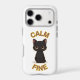 The design features a sleek **black cat face with glowing golden eyes**, surrounded by a subtle gold halo, and paired with the words **“CALM – FINE”** in smooth curved typography.