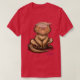 I give wanted to give this a 4 instead of a 5 because these Basic DARK T0shirts run unexpectedly SLIM or Narrow. Which is great if you do not have a potbelly, but I have a paunch. It isn't the shirt's fault that I've got a beer belly. The design and shirt itself is a quality cotton shirt. The color is more of a deep purple, but still a very pretty color. The Basic DARK T-shirts run a bit SLIMMER than the Basic Ts. The neck is a fraction narrower (or seems to be narrower) also. I'm a paunchy middle-aged woman and my neck is 12 inches (31cm) thick and the neckline fell about the same as in the photo of the man, and I had the desire to tug it a bit. So if you're a thick necked man or like loose shirts, be aware these are slimmer shirts. Once I get rid of my lockdown paunch it'll look great. The shirt washed well in cold water with no apparent bleeding. We don't have a dryer, so it hung dry. Did not shrink. Love the colors and the design. The design looks smaller on my shirt than it does on the model on-line. But still, it looks good on the shirt. The printing looks as it does on the model, just the size seems fractionally smaller. Washed garment in cold water, hung dry and design appeared unaffected.