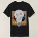 I give wanted to give this a 4 instead of a 5 because these Basic DARK T0shirts run unexpectedly SLIM or Narrow. Which is great if you do not have a potbelly, but I have a paunch. It isn't the shirt's fault that I've got a beer belly. The design and shirt itself is a quality cotton shirt. The color is more of a deep purple, but still a very pretty color. The Basic DARK T-shirts run a bit SLIMMER than the Basic Ts. The neck is a fraction narrower (or seems to be narrower) also. I'm a paunchy middle-aged woman and my neck is 12 inches (31cm) thick and the neckline fell about the same as in the photo of the man, and I had the desire to tug it a bit. So if you're a thick necked man or like loose shirts, be aware these are slimmer shirts. Once I get rid of my lockdown paunch it'll look great. The shirt washed well in cold water with no apparent bleeding. We don't have a dryer, so it hung dry. Did not shrink. Love the colors and the design. The design looks smaller on my shirt than it does on the model on-line. But still, it looks good on the shirt. The printing looks as it does on the model, just the size seems fractionally smaller. Washed garment in cold water, hung dry and design appeared unaffected.