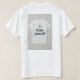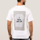 It is a white, medium-sized T-shirt with the phrase “I am here” written on the front and the phrase “I love you all” written on the back.