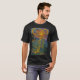 I give wanted to give this a 4 instead of a 5 because these Basic DARK T0shirts run unexpectedly SLIM or Narrow. Which is great if you do not have a potbelly, but I have a paunch. It isn't the shirt's fault that I've got a beer belly. The design and shirt itself is a quality cotton shirt. The color is more of a deep purple, but still a very pretty color. The Basic DARK T-shirts run a bit SLIMMER than the Basic Ts. The neck is a fraction narrower (or seems to be narrower) also. I'm a paunchy middle-aged woman and my neck is 12 inches (31cm) thick and the neckline fell about the same as in the photo of the man, and I had the desire to tug it a bit. So if you're a thick necked man or like loose shirts, be aware these are slimmer shirts. Once I get rid of my lockdown paunch it'll look great. The shirt washed well in cold water with no apparent bleeding. We don't have a dryer, so it hung dry. Did not shrink. Love the colors and the design. The design looks smaller on my shirt than it does on the model on-line. But still, it looks good on the shirt. The printing looks as it does on the model, just the size seems fractionally smaller. Washed garment in cold water, hung dry and design appeared unaffected.