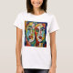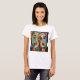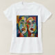 Unique t-shirt with abstract image, cubism style, colourful faces, modern.