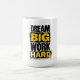 The design features massive, distressed black block typography for "DREAM" and "WORK," rendered with a rugged, industrial hatched texture. These words frame "BIG" and "HARD," which are presented in solid yellow lettering inside bold, weathered black boxes.