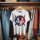 The T-shirt is great quality! The cotton is thick and does not lose its shape. I bought this as a gift last Christmas and since then it has been washed many times and I haven't seen any stretching or tears. The size fits perfectly. The printing is excellent. The colours and the design were exactly as shown in the picture. One year after, it hasn't faded due to washing.