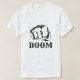 a t-shirt write with boom. and hand shape in the font. this is simple typography t-shirt design.