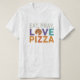 The t-shirt playfully subverts the title of the book/movie "Eat, Pray, Love" by replacing "Love" with "Pizza." It likely features text with "Eat" "Pray" and "Pizza" in a similar font style, possibly stacked on top of each other. There might also be a graphic of a pizza slice to visually represent the replaced word.