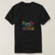 Here's a description for a t-shirt design with "Family, Duty, Honour" in multi-colour: