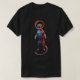I give wanted to give this a 4 instead of a 5 because these Basic DARK T0shirts run unexpectedly SLIM or Narrow. Which is great if you do not have a potbelly, but I have a paunch. It isn't the shirt's fault that I've got a beer belly. The design and shirt itself is a quality cotton shirt. The color is more of a deep purple, but still a very pretty color. The Basic DARK T-shirts run a bit SLIMMER than the Basic Ts. The neck is a fraction narrower (or seems to be narrower) also. I'm a paunchy middle-aged woman and my neck is 12 inches (31cm) thick and the neckline fell about the same as in the photo of the man, and I had the desire to tug it a bit. So if you're a thick necked man or like loose shirts, be aware these are slimmer shirts. Once I get rid of my lockdown paunch it'll look great. The shirt washed well in cold water with no apparent bleeding. We don't have a dryer, so it hung dry. Did not shrink. Love the colors and the design. The design looks smaller on my shirt than it does on the model on-line. But still, it looks good on the shirt. The printing looks as it does on the model, just the size seems fractionally smaller. Washed garment in cold water, hung dry and design appeared unaffected.