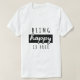 A simple and stylish t-shirt with the phrase **"Being Happy is Free"** printed in a clean, modern font, radiating positivity and joy.