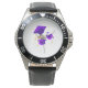 Watch, Stainless Steel Black Leather