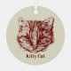 This cat themed Christmas ornament features on one side a portrait of a domestic cat originally created as an ink drawing now converted to a digital file which allows for the customisation of its colour to any hue by editing the design. Name text on the front may be personalised as well as text on the back.