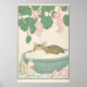 Tabby Cat in Bathtub Art Print Japanese Bathroom