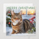 Tabby Cat In Snow Elegant Merry Christmas Holiday Card