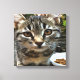 Tabby Cat Kitten Making Eye Contact Pet Portrait is a painting on canvas of a kitten with a cute expression. Buy it Meow! A purr fect fur baby feline theme ideal for cat lovers, tabby cat lovers, brown tabby lovers. Gift to tabby cat owners, mum, dad, brother, sister, kids, grandparents