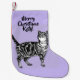 Tabby Cat Merry Christmas Purple lavender Stocking