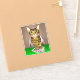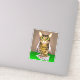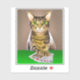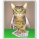 Sticker in a portrait of a brown and tan tabby cat playing cards - and winning