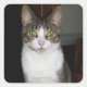 Domestic tabby cat looking straight at the camera with its big green eyes