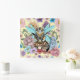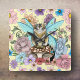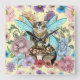 Tabby Fairy Cat Mushroom Floral Square Wall Clock