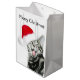 Cute silver tabby kitten wears Santa hat and happily wishes everyone a Merry Christmas cat lovers Christmas holiday gift bag