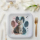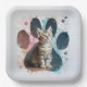 Tabby Kitten In a Watercolor Paw Print Paper Plate