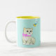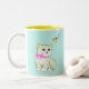 Tabby Kitty Cat & Little Bird on Light Blue Two-Tone Coffee Mug