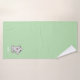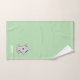 Cute tabby kitty cat and name text on light green Bath Towel Set.