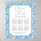 Table 6 Seating Plan Wedding Chintz Blue & White Poster