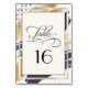 Table Card | Modern Paint Strokes and Typography | Beautiful Typography sets off this modern Wedding Invitation Suite - plum-black and gold abstract paint strokes and plum-black and gold dots behind the centre text frame that has all your customisable wedding information - - Design by BarefootBride™