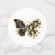 Gold flower butterfly with black jewelry orchid, decorated with gold leaves on white background.