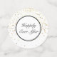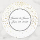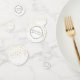This table confetti is shown in a white colour with a petite gold stars print design also with a custom wedding names sample.