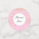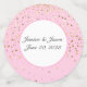 This table confetti is shown in a pink colour with a petite gold stars print design also with a custom wedding names sample.