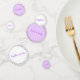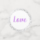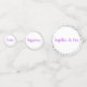 These table confetti pieces are a mix of Orchid Pinks and White and double sided with well-wishing comments for the bride and groom. Graphics of petite grey coloured stars grace both front and back around the edges. Simple, yet elegant design. Sample texts are "Jason & Emily", "congrats", "Happiness"."Together As One", "Love", "Forever". Customise this item or buy as designed.