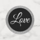 These table confetti pieces are a mix of Black, Silver and Dusty Blue. One side has the Blue faux glitter look and the other side a fine faux glitter print. Graphic of Dusty Blue glitter print and Silver glitter print. Sample text reads "love", "congrats", "sample names of Gregg & Lisa". Change to your own personalised text choices. Customise this item or buy as designed.