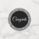 These table confetti pieces are a mix of Black, Silver and Wine/Plum. One side has a Graphic of Wine/Plum glitter print and the other has a Silver glitter print with text for you to customise or buy as shown. Text reads " Love", "Congrats", "Names-sample shown is Gregg and Lisa". Customise this item or buy as designed.