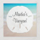 Table name, beach themed wedding cards with menu on one side and big sand dollar on the other. Seat guests by naming each table after a local town, or other theme. Direct guests to their reception seats where they will find the wedding menu on the opposite side of these ocean beach themed square cards.