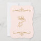 Table Number 15 COLOR PALETTE:  Blush Pink and Faux Gold Glitter Metallic Look  DESIGN COLLECTION:  In black with a golden glitter metallic look with a dimensional effect that is perfect to coordinate with a wide range of weddings, bridal showers, business and formal reception events.  This is a hand lettered calligraphy font with scrolls, swirls and elegant handwriting lettering.  You will need a number stand or frame to use these effectively - which are not provided.  Available in numbers 1-25 stock, we can add additional numbers if your event is large enough to require them.  We can also do custom colour combinations for a small additional fee.