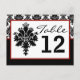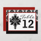 Table Number Card Black Red Damask Lace Print